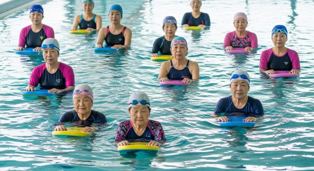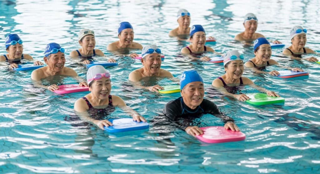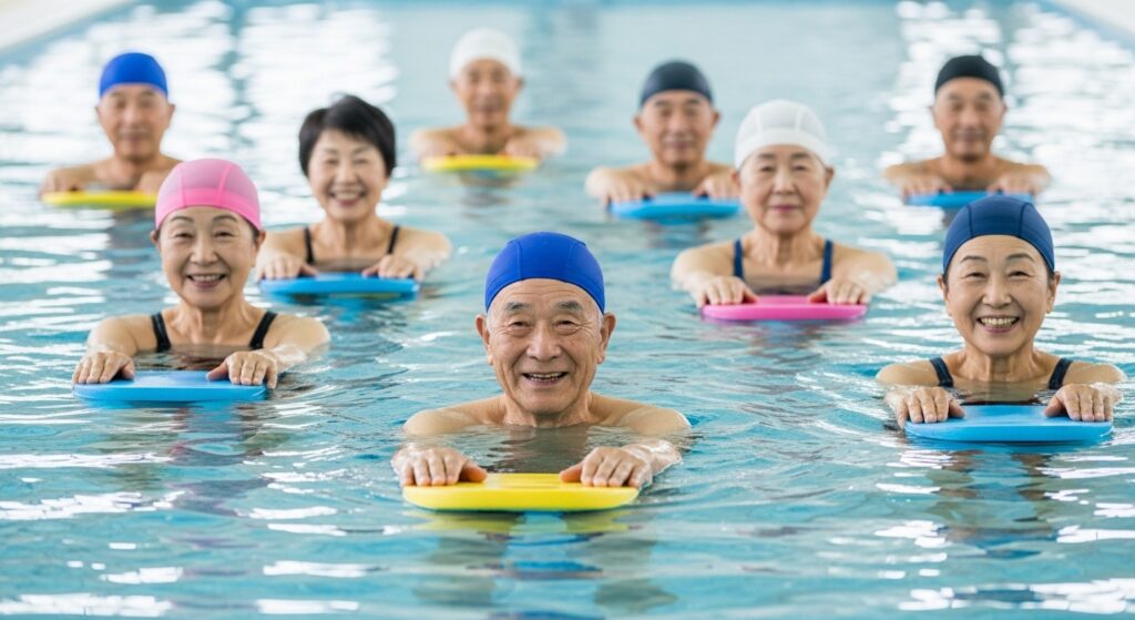 フィットネス運動で、浮力・水圧・水の抵抗などの特性から